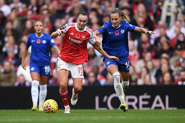 Arsenal fought back with relentless attacking flair to salvage a 1-1 draw against Chelsea in a high-stakes London Derby. The match featured late drama and individual magic from Alessia Russo, as both sides vied for crucial points in the WSL title race. As the game kicked off under the floodlights of the Emirates, the atmosphere was electric, a cauldron of red-and-white passion clashing with Chelsea’s blue steel. Chants echoed around the stadium, flares lit the stands, and a sell-out crowd of over 30,000 created a wall of noise, setting the tone for a fiercely contested battle from the first whistle.